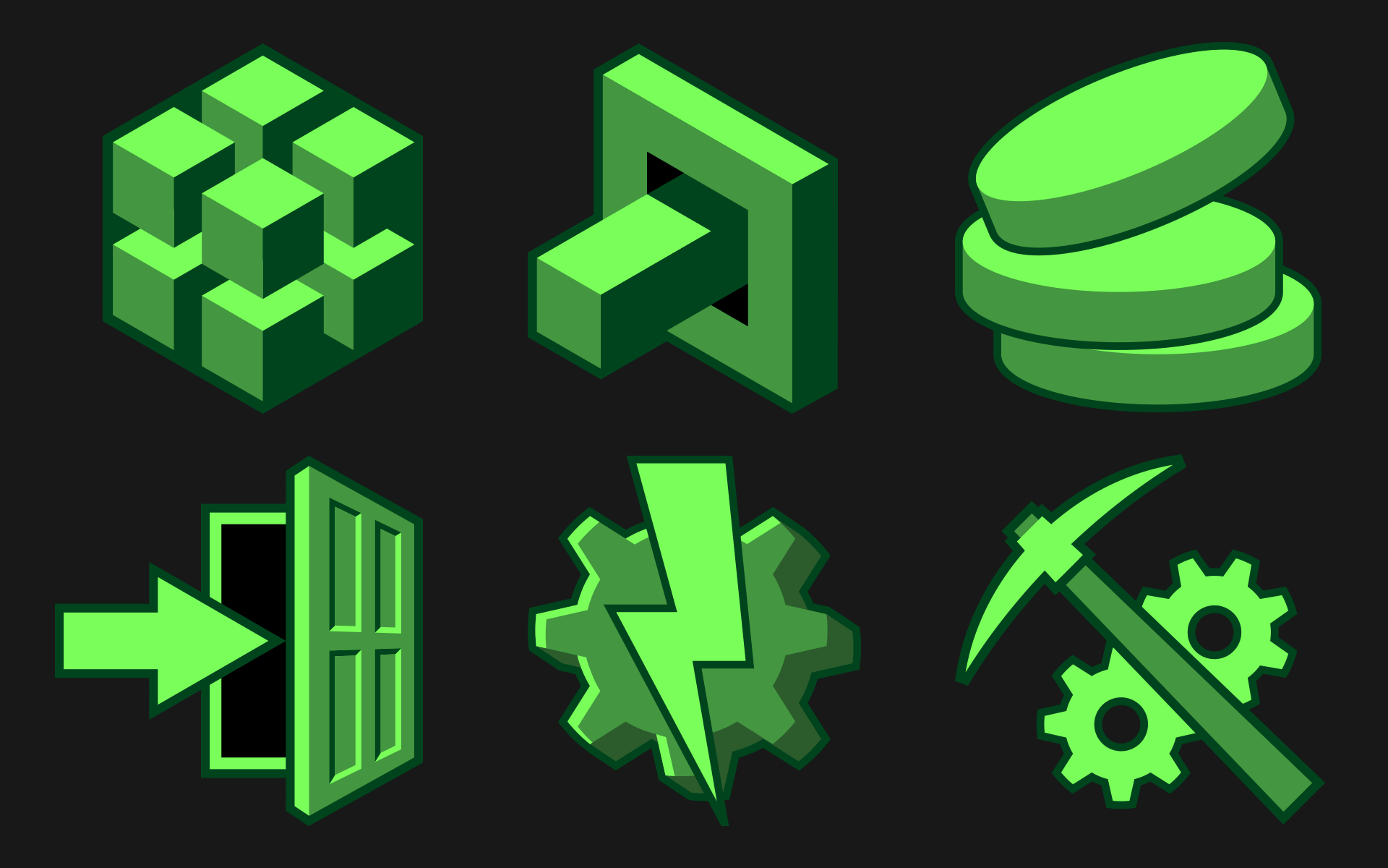 Icon exploration for a mock cryptocurrency system kept in mind a need for being obviously distinct from one another, allowing for an opportunity to bring color into the context of an otherwise monochromatic color scheme.