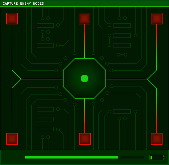 This minigame involves capturing enemy nodes while defending your home base from attacks. Exploration on the overall aesthetics and various microinteractions helped to ensure consistency and clear visual communication.